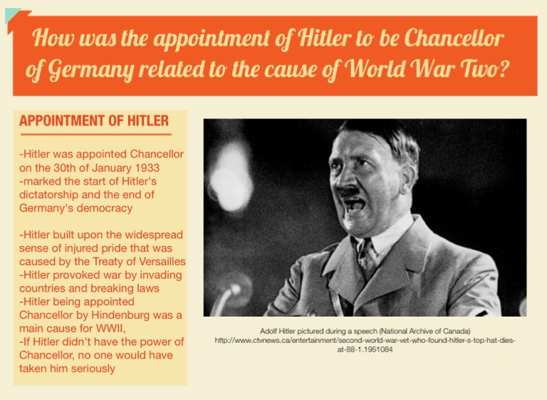 -Hitler being appointed Chancellor by Hindenburg was a main cause for WWII,