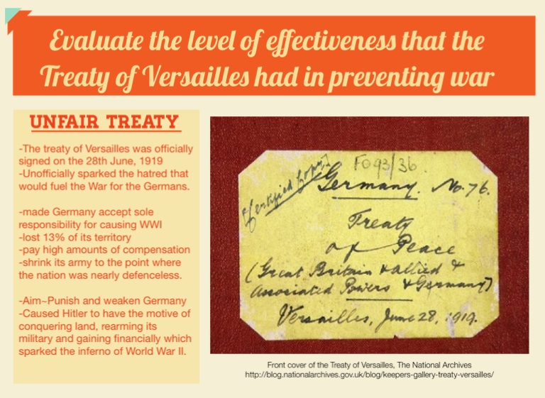 Evaluate the level of effectiveness that the Treaty of Versailles had in preventing war