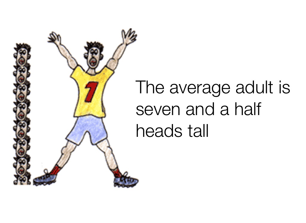 The average adult is seven and a half heads tall