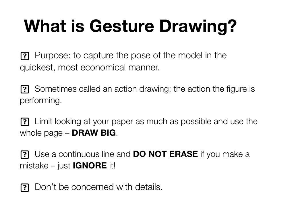 Limit looking at your paper as much as possible and use the whole page – DRAW BIG.