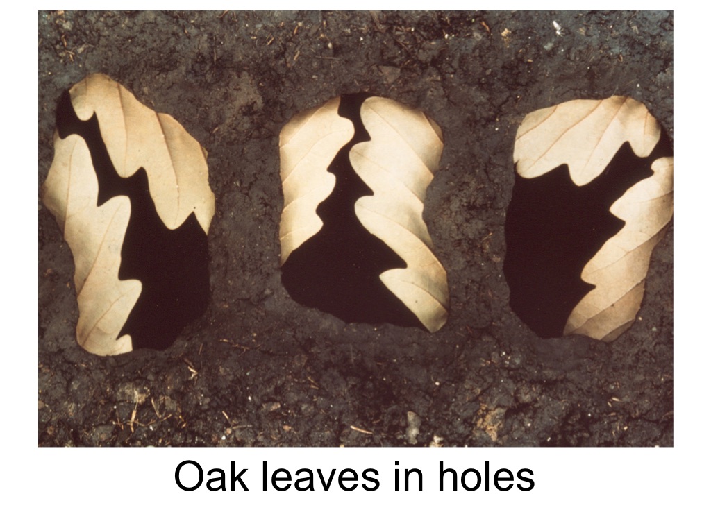 Oak leaves in holes