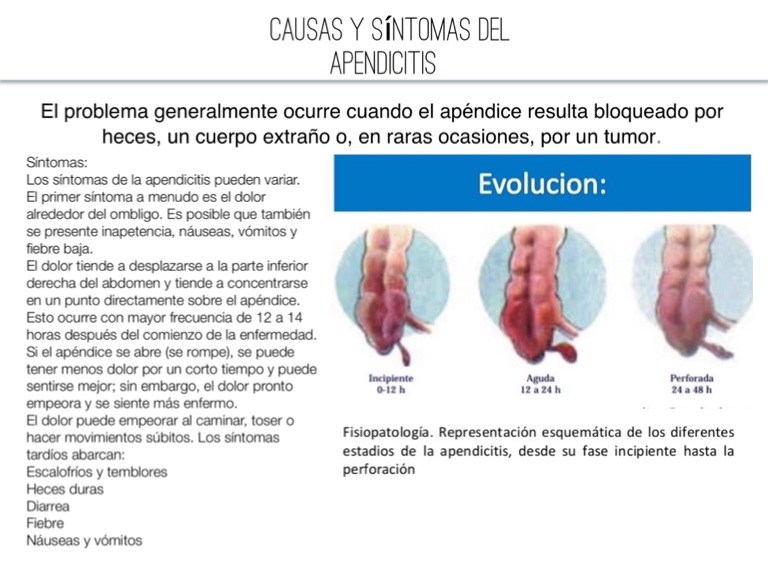 El problema generalmente ocurre cuando el apéndice resulta bloqueado por heces, un cuerpo extraño o, en raras ocasiones, por un tumor.