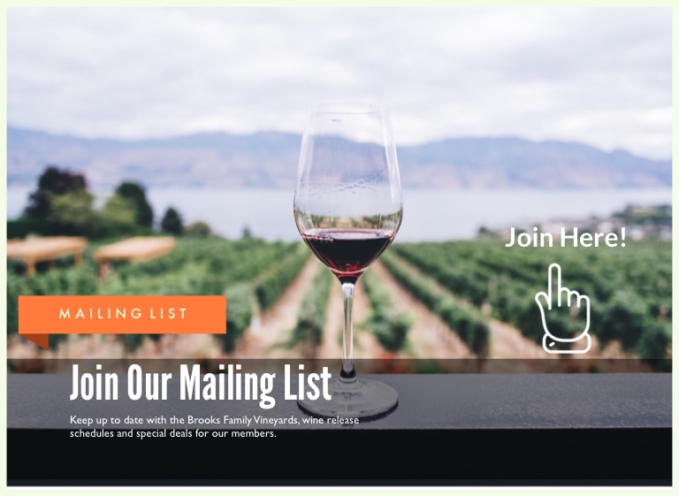 Keep up to date with the Brooks Family Vineyards, wine release schedules and special deals for our members.